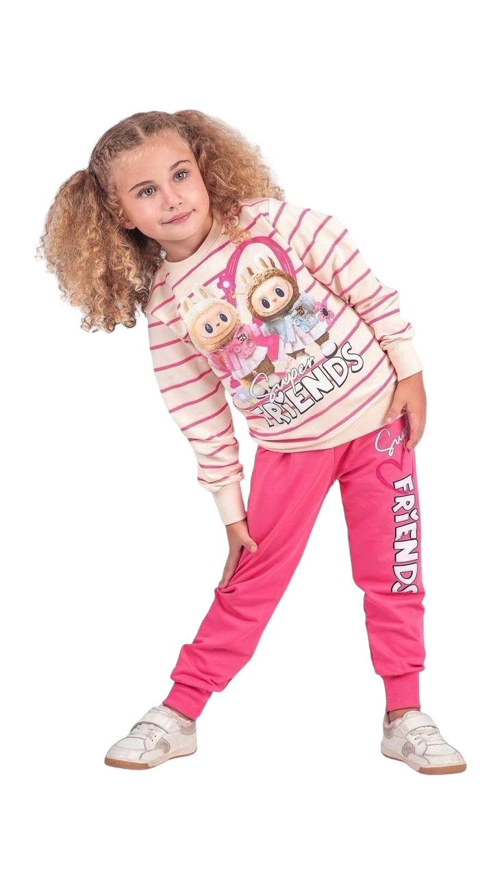 Детски комплект за момиче с дълъг ръкав, розов цвят
