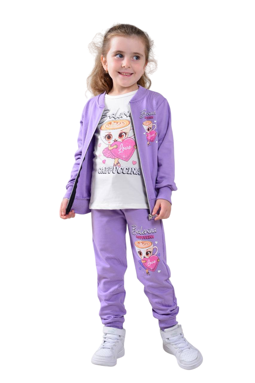 Детски комплект за момиче с дълъг ръкав 3 части лека вата, лилав цвят